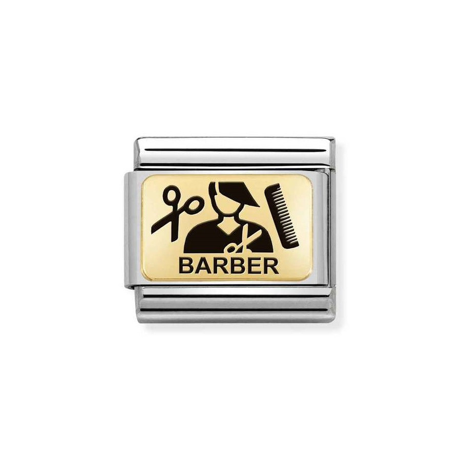 Dla mistrza nożyczek i brzytwy! Element Composable Gold 18K Barber / Fryzjer (kod: 030166/13) to idealny, luksusowy akcent, aby uczcić pasję do fryzjerstwa. Dodaj złoty symbol rzemiosła do swojej bransoletki Nomination.