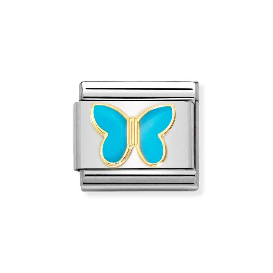 Odkryj element Composable Gold 18K Turkusowy motyl (kod: 030285/63)! Dodaj swojej bransoletce Nomination luksusowego blasku i odrobinę magii. Subtelny turkusowy motyl, wykonany z 18-karatowego złota, to symbol lekkości i elegancji. Idealny, aby podkreślić Twój wyjątkowy styl.