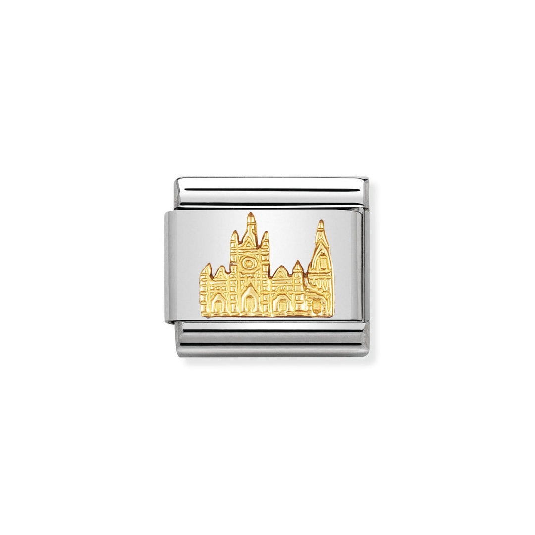 Odkryj element „Kościół we Florencji” z kolekcji Composable GOLD 18K (kod: 030123/11). Przenieś się myślami do Włoch! Ten luksusowy, złoty element to wyjątkowy hołd dla florenckiej architektury. Dodaj swojej bransoletce Nomination elegancji i blasku 18-karatowego złota.
